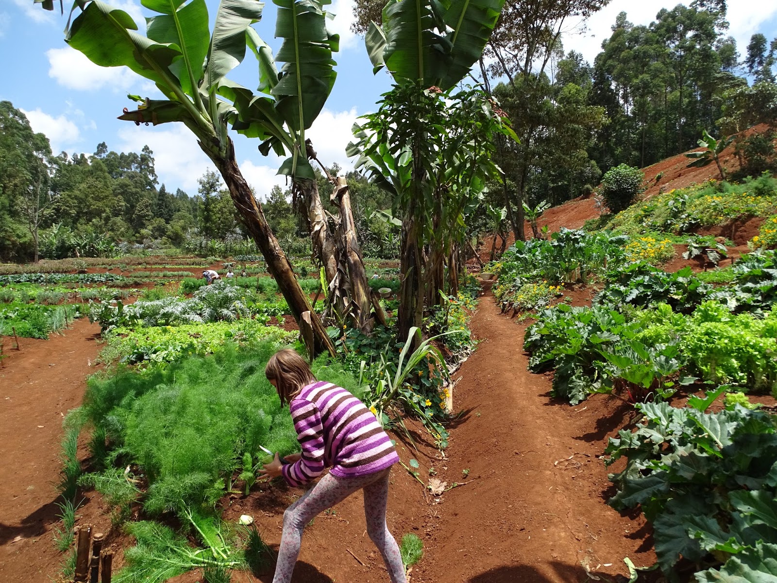 Els und Kamande haben sich in Holland kennen und lieben gelernt. Für Kamande war allerdings klar, dass er wieder in seine Heimat Kenia zurückkehren wollte, wo seine Familie ein grosses Stück Land besass, das damals brach lag. Vor neun Jahren zogen die beiden auf die Mlango Farm und begannen ganz bescheiden mit einem kleinen Kohlfeld. Über die Jahre wurde der Busch Stück für Stück gerodet, Terrassen angelegt, weiteres Gemüse gepflanzt, vorsichtig Angestellte eingestellt und ein richtiges Business aufgezogen. Mittlerweile bieten sie 50 Personen einen Job. Seit einem Jahr nun muss selbst Els nicht mehr ¾ Stunden ins Büro nach Nairobi fahren, sondern auch sie arbeitet Vollzeit auf der Farm, die sich augenscheinlich zu einem Erfolg entwickelt hat. Heute verkaufen die beiden ihr Gemüse an Hotels und Private in Nairobi, bieten Ausflüge und Übernachtungen an, stellen in einer Galerie Bilder und Kunstgegenstände von meist kenianischen Künstlern aus und sprudeln geradezu vor Ideen. Neuestes Projekt ist ein alter Bus, der im Garten steht und zu einem Wohnwagen umgebaut werden soll, damit darin Feriengäste beherbergt werden können.